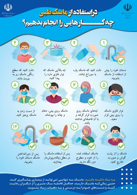 - پس از دور انداختن ماسک طبی دستان خود را بشویید.